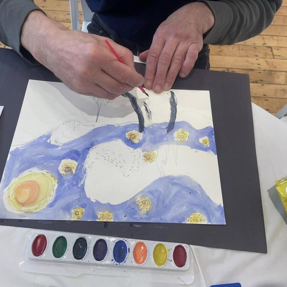 The journey in these workshops often culminates in a piece of art that visually embodies a personal coping strategy or source of strength. The act of creating this visual representation is itself a therapeutic process.Once the piece is complete, the final reflection—examining the art and articulating the feelig.
